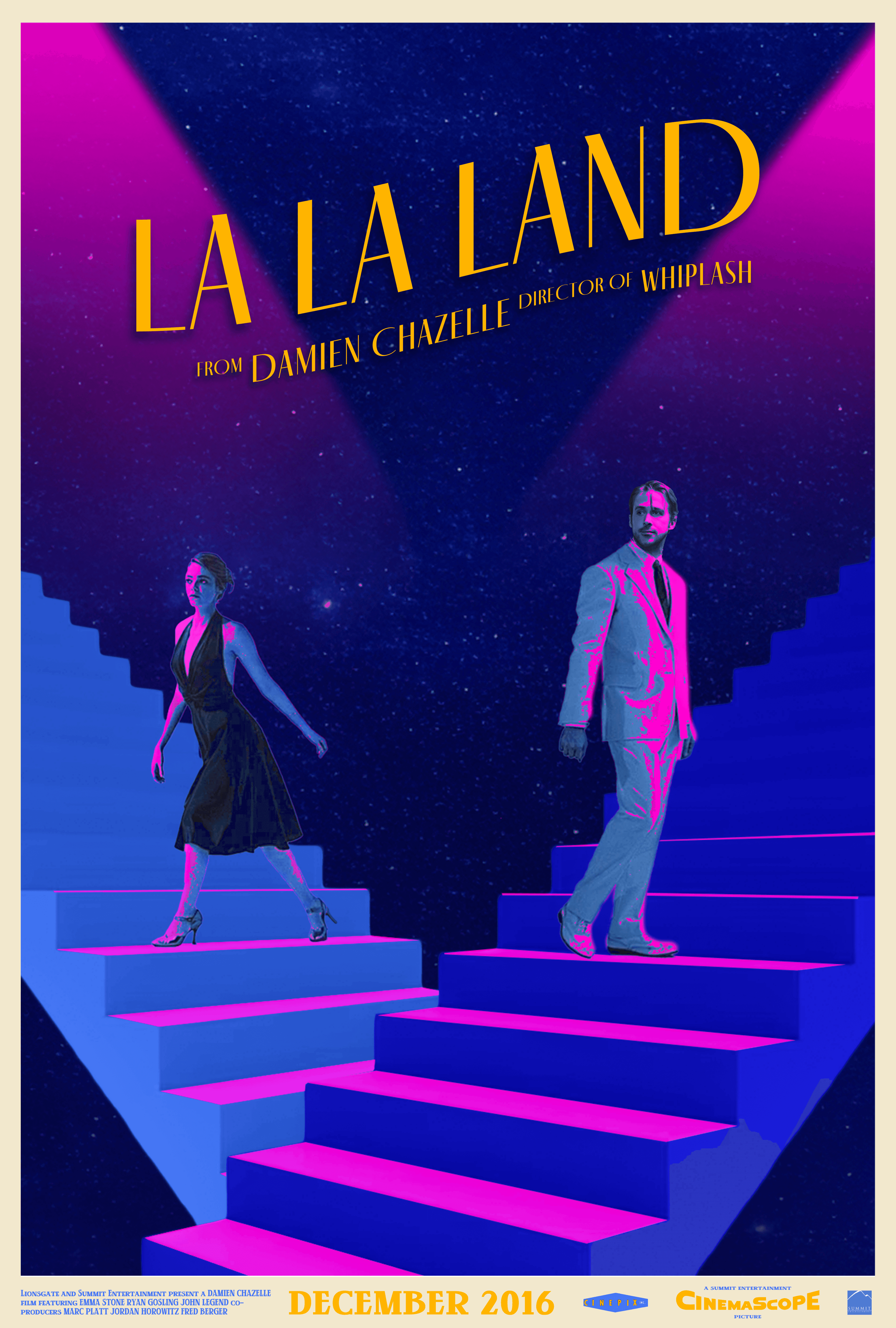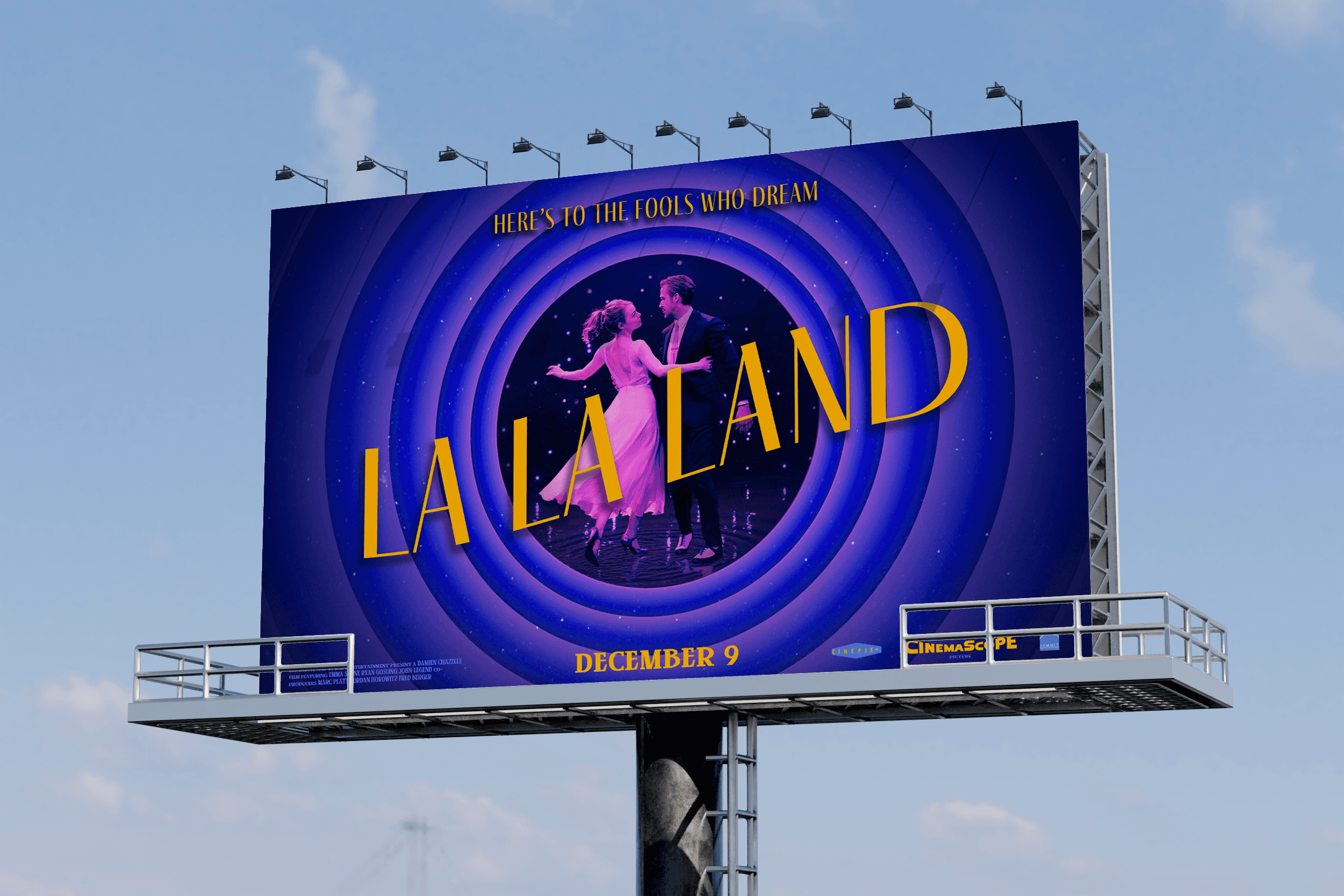 The campaign is inspired by the La La Land's use of color and lighting to signify character and plot development. I wanted to combine architecture and scenes taken from the movie to create a campaign that told the story as beginning, middle, and end. I drew style inspiration from 1950's movie posters to further the movie's theme of a blurred reality between modern day and vintage Hollywood.